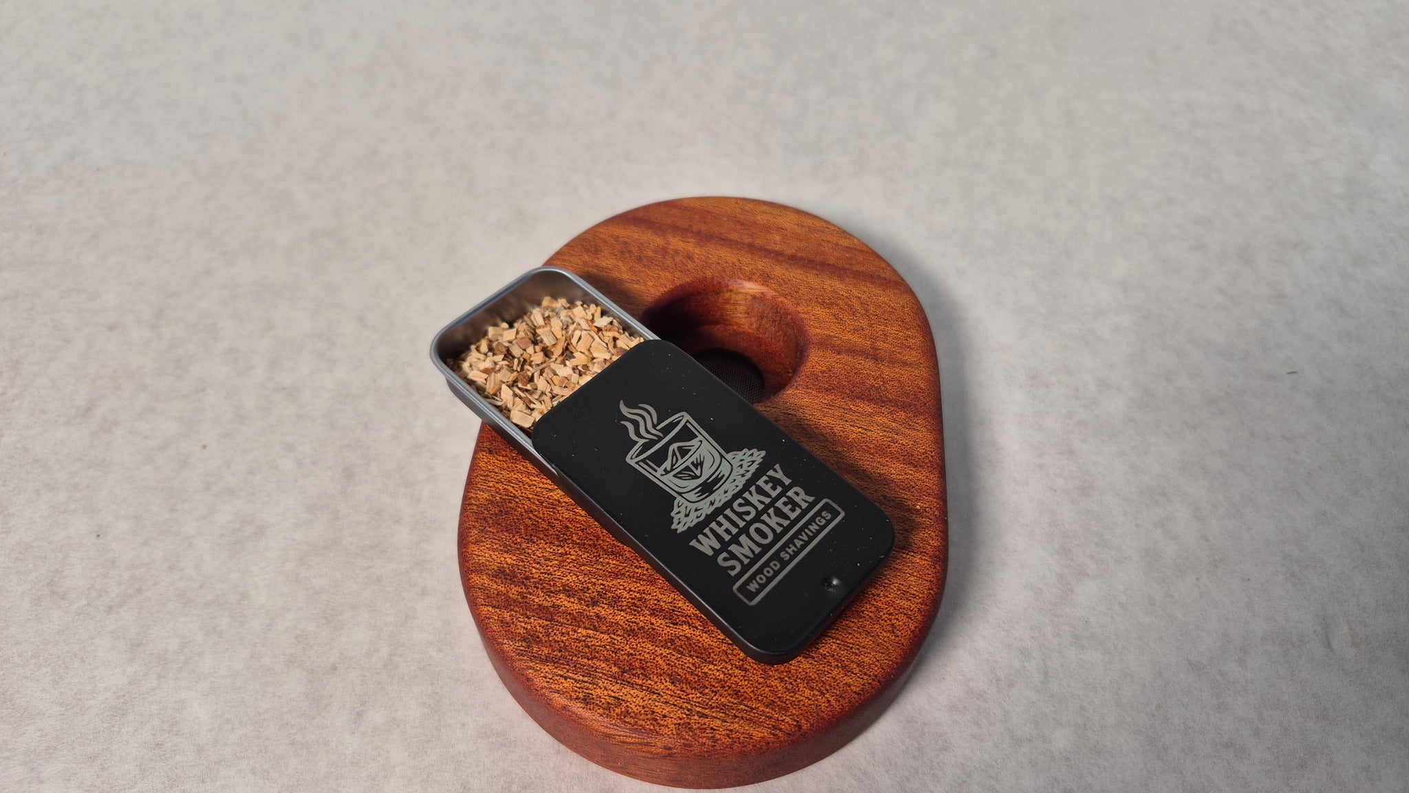 Elevate your whiskey ritual with the Whiskey Smoker, expertly crafted from rich mahogany, striking birds eye maple, and distinctive ambrosia maple. This smoker enhances the flavor profile by infusing your drink with subtle, aromatic smoke, transforming every sip into a refined experience. Perfect for those who appreciate the art of whiskey, it combines premium woods to deliver both aesthetic beauty and functional excellence. Add a sophisticated touch to your relaxation time and upgrade your tasting sessions with this elegant, expertly designed accessory. Includes small tin of smoker fuel.